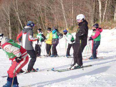 1/30(木)、低気圧の接近で強風の吹く中、スキー場にてスキー・スノーボード授業が行われました。町教育委員会から講師をお願いし、それぞれの班に本校生徒が加わり、大機高校の生徒達にスキーレッスンが行われ、滑れなかった生徒もリフトに乗り自力で滑ることができるまで上達していました。