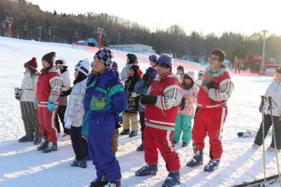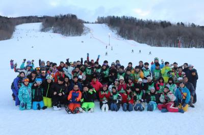 スキー交流後、それぞれの生徒からお礼の挨拶があった後、2校全員で記念撮影を行い今年も無事交流事業を終えることができました。