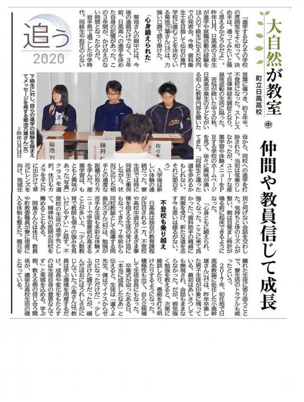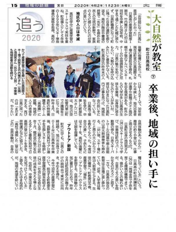 1/23 北海道新聞掲載記事「大自然が教室」(下)