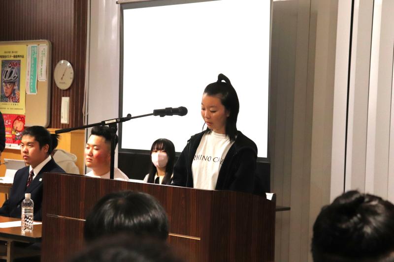 生徒会長、副会長、議長、会計長の立候補者と責任者がそれぞれ日高高校への熱い思いを発表していました。